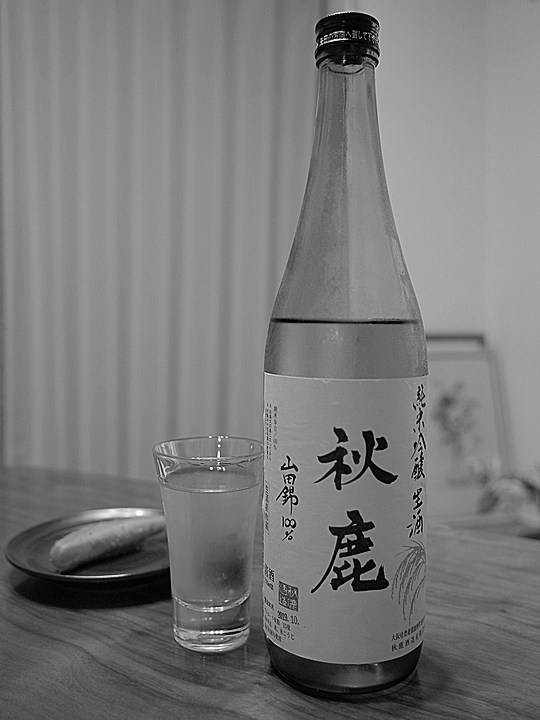 秋らしい料理(鮭ホイル焼き)には秋らしいお酒ということで、大阪能勢の秋鹿を。