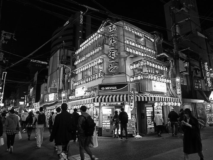 ひときわ目立つホルモン焼きのお店。提灯の数がすごい。