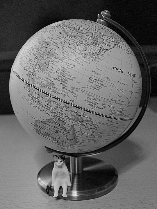 直径13cmほどの小さな地球儀。京都にある雑貨屋で購入したもので、おそらく台湾製。