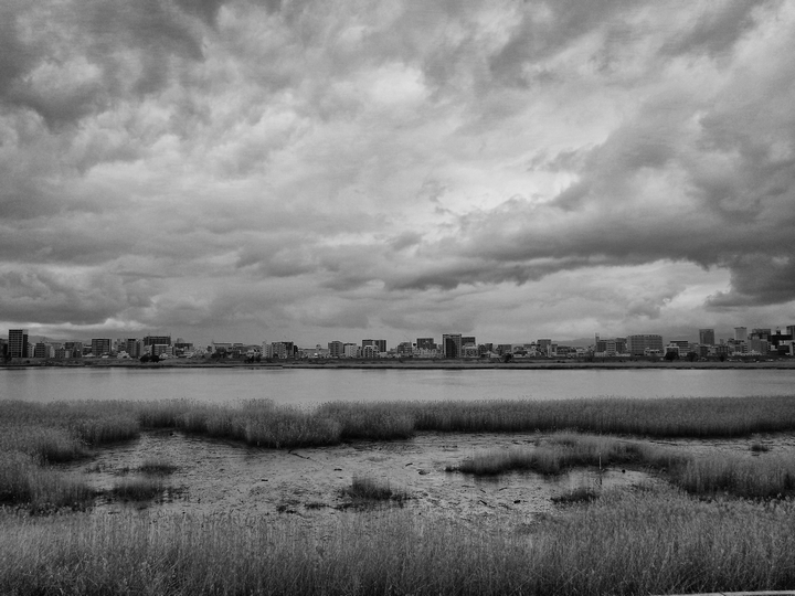 今日は広々とした河川敷を散歩。ちょっと曇っていますが。