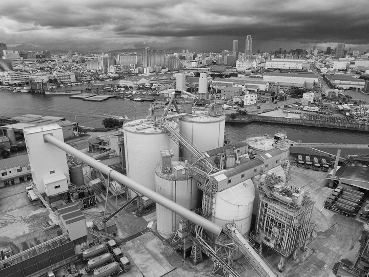 同じく橋の上から、工場地帯。