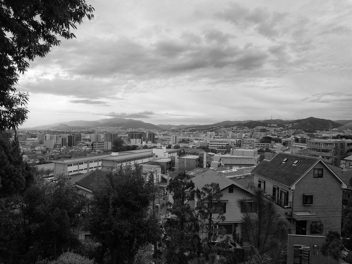 古墳の頂上から町を望む。