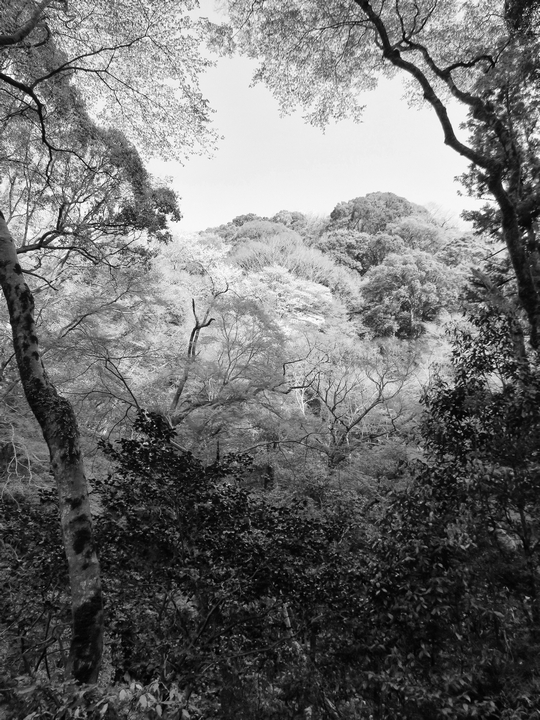 山桜が満開になっていますが、モノクロ写真ではよく分かりません。