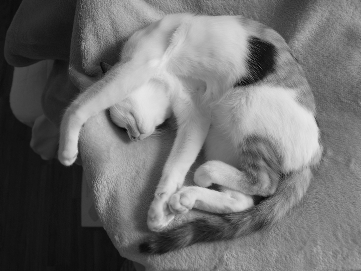 毎度変な格好で寝ている仔猫。